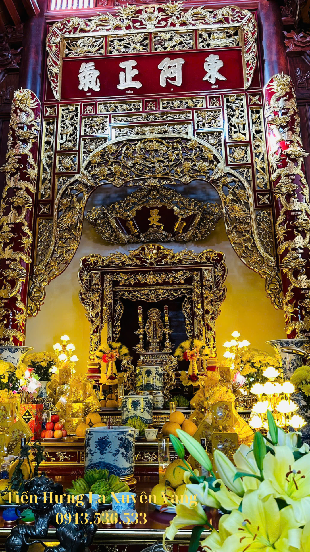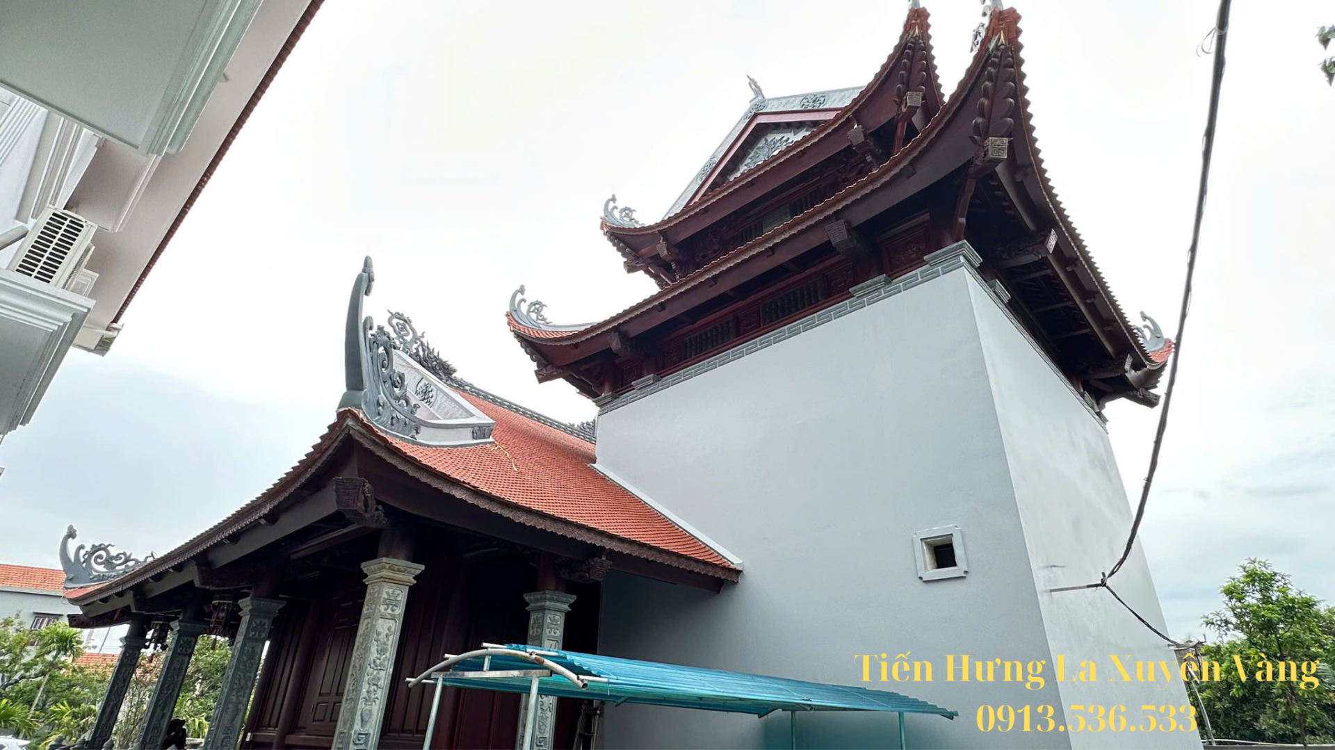 🏯 Nhà Thờ 3 Gian 4 Hiên Có Hậu Cung – Gỗ Lim Lào Cao Cấp