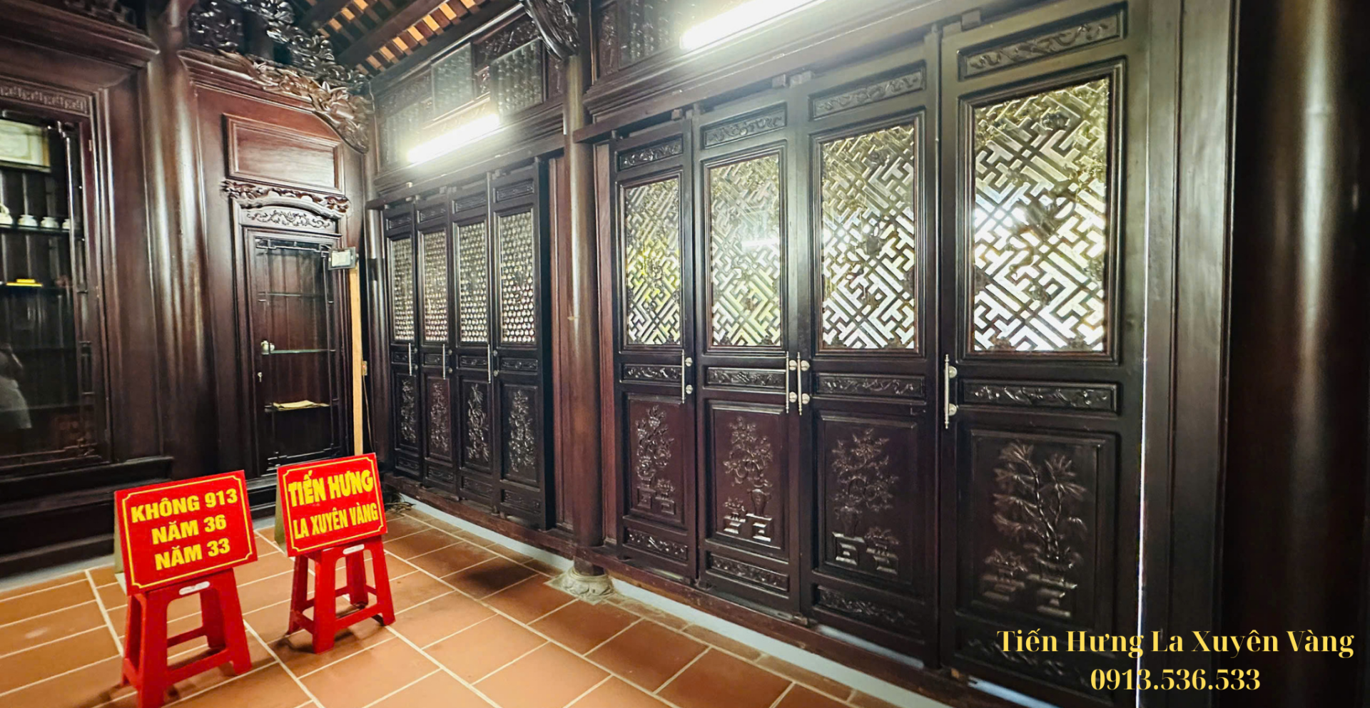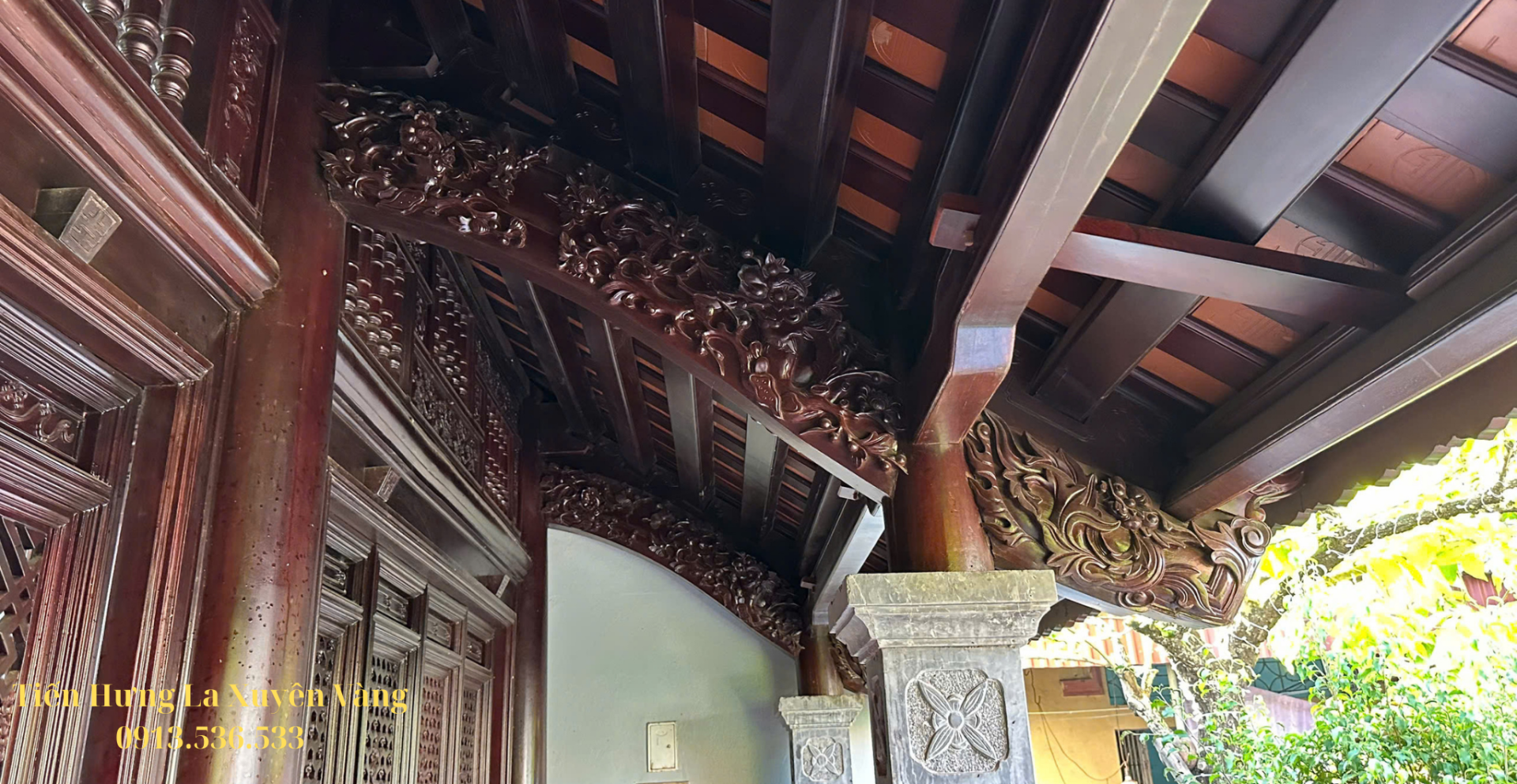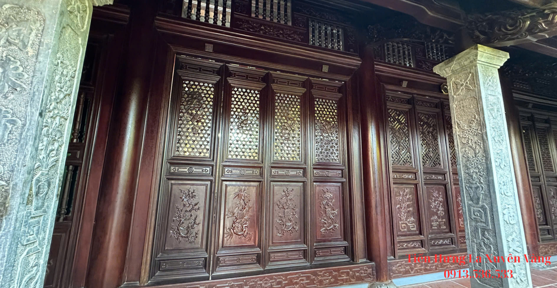 Chạm khắc tinh xảo: Hoa văn tứ linh, tứ quý, họa tiết cổ truyền.