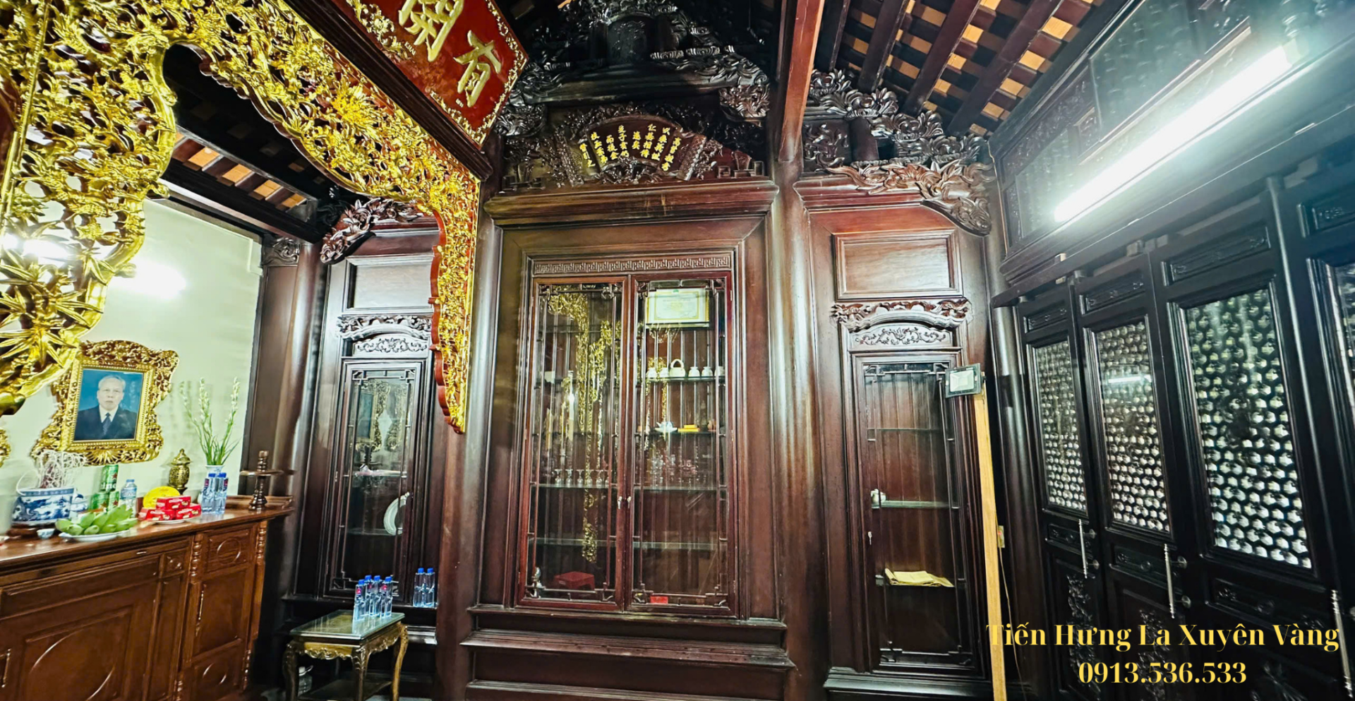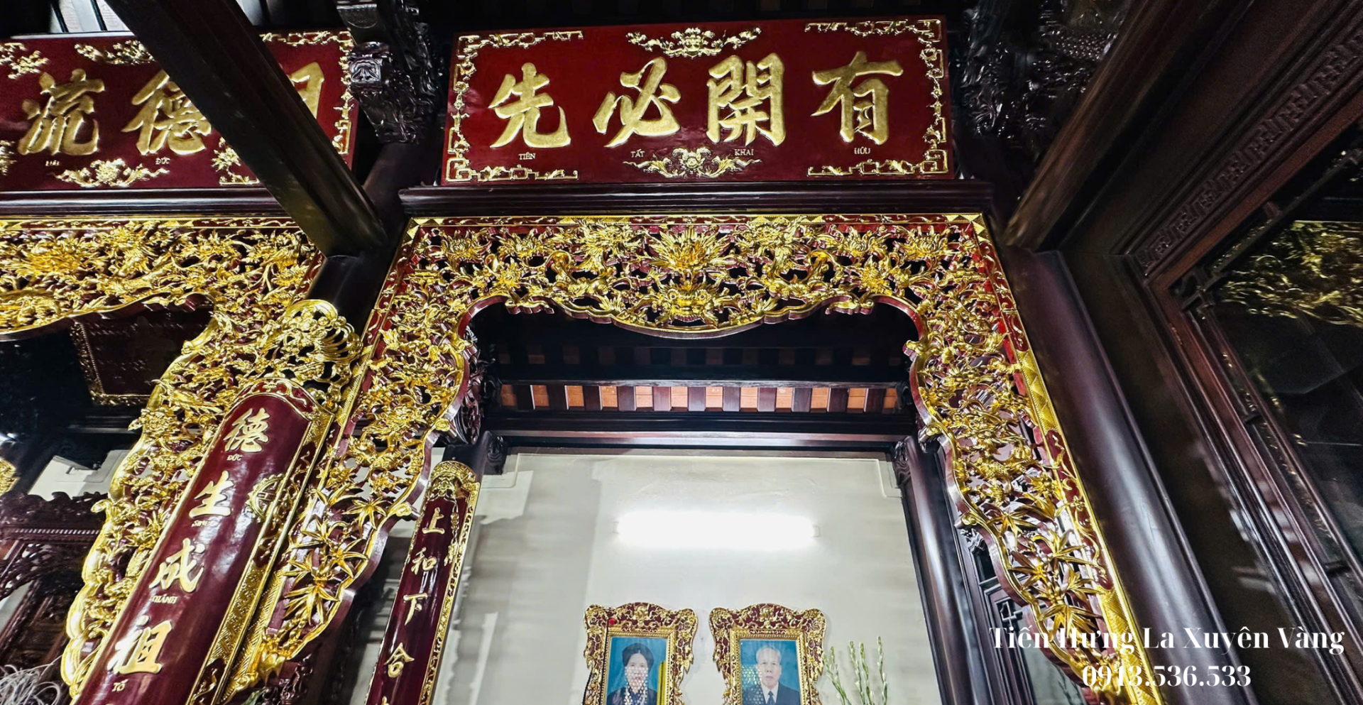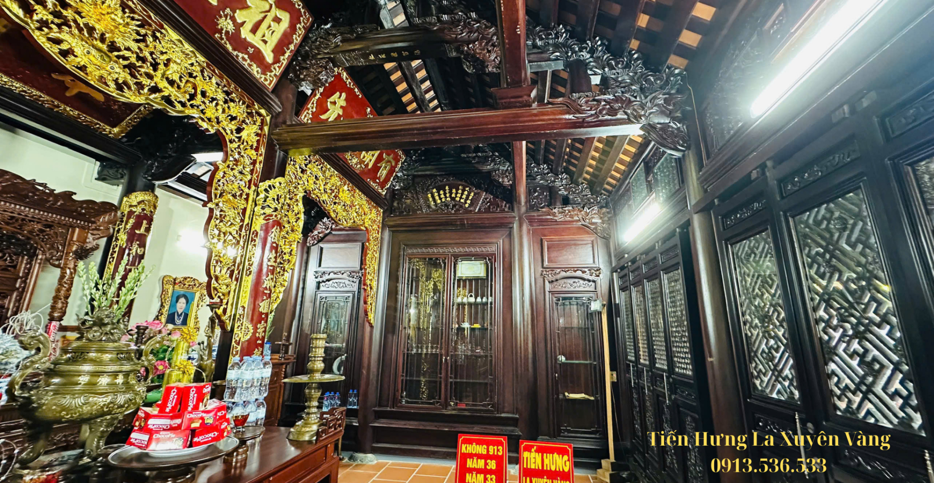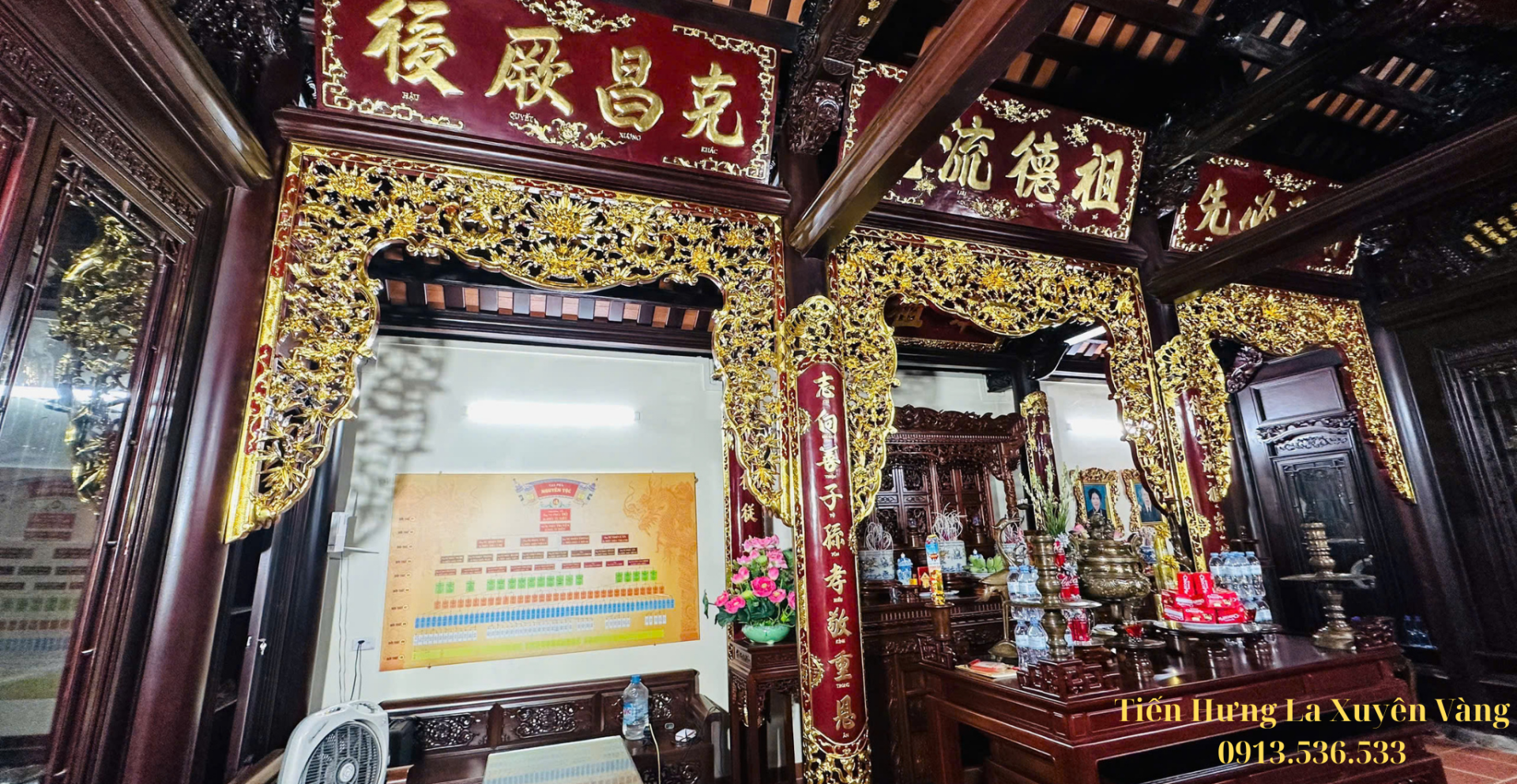 Chạm khắc tinh xảo: Hoa văn tứ linh, tứ quý, họa tiết cổ truyền.