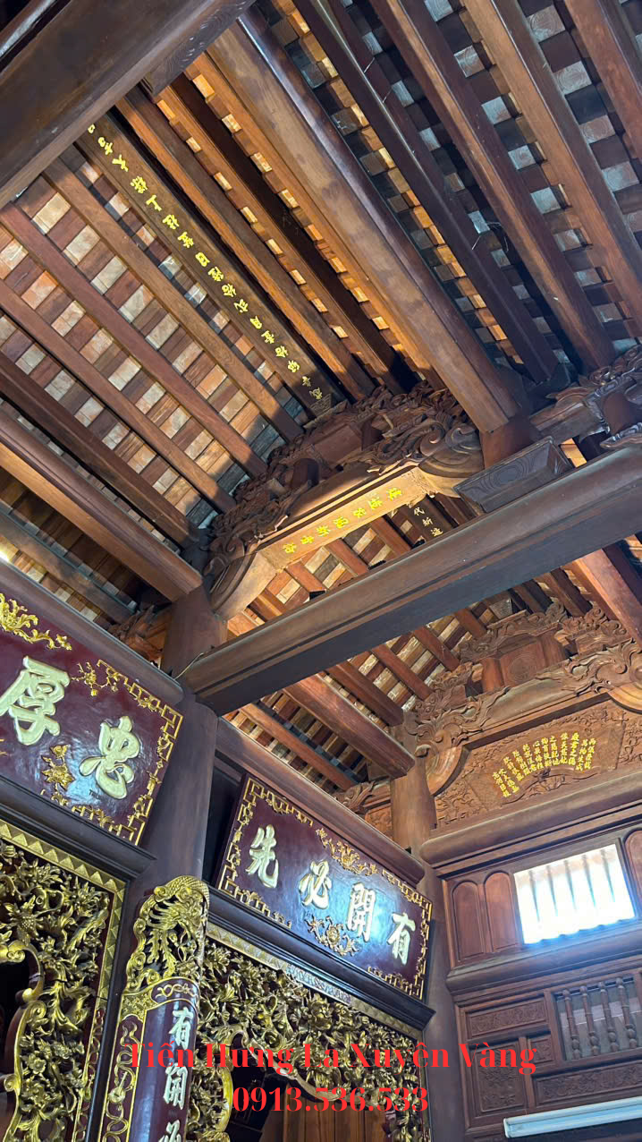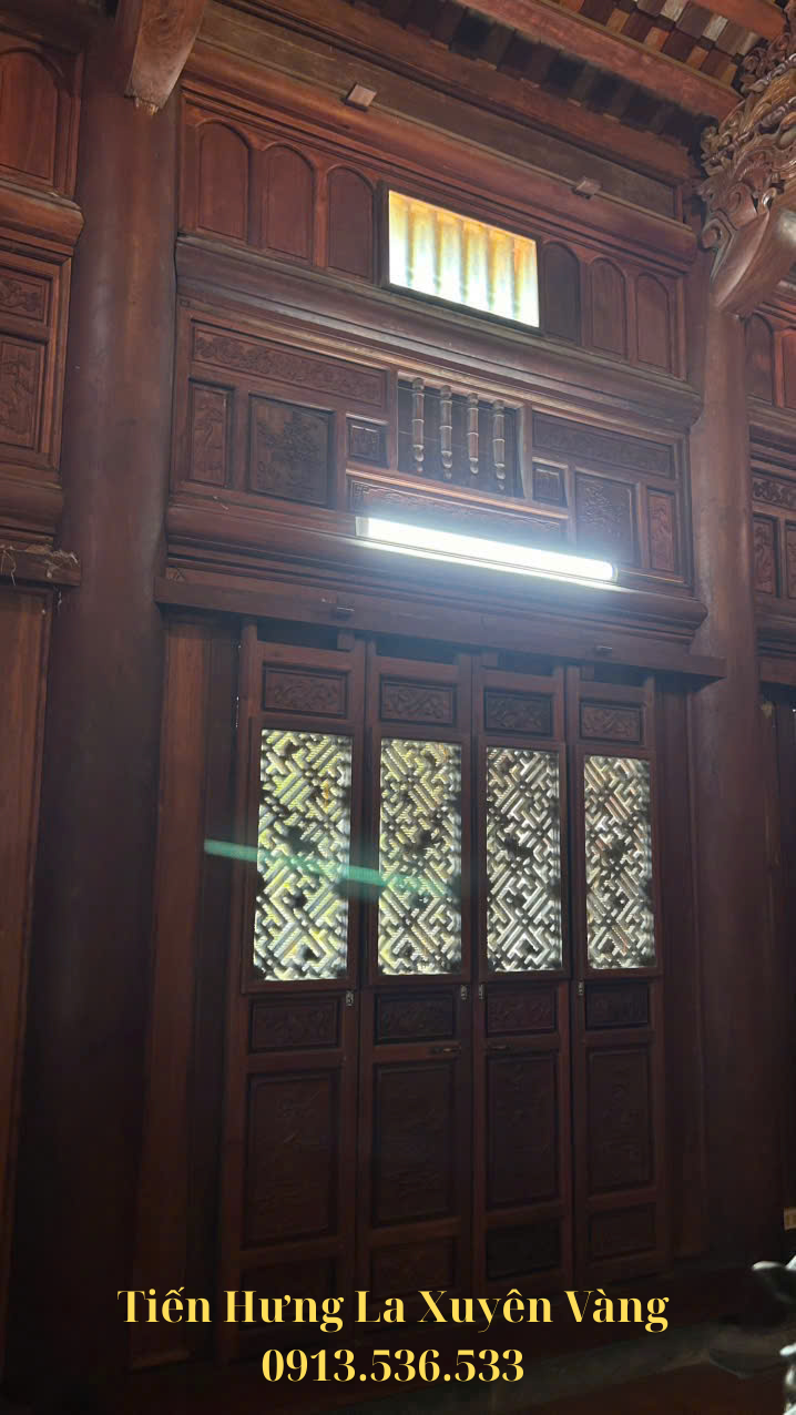 Kết cấu cột: hệ cột gỗ Lim Lào được gia công, lắp dựng bằng kỹ thuật mộng truyền thống.