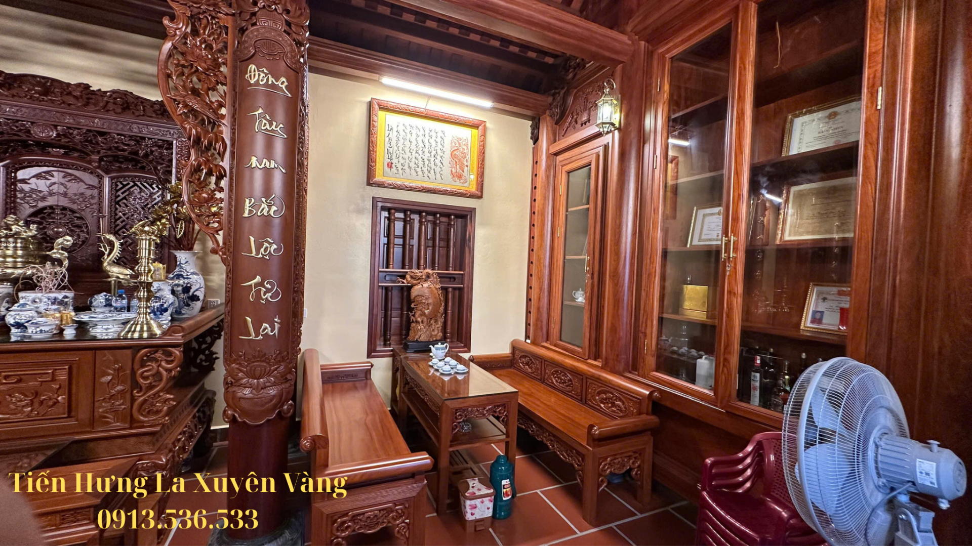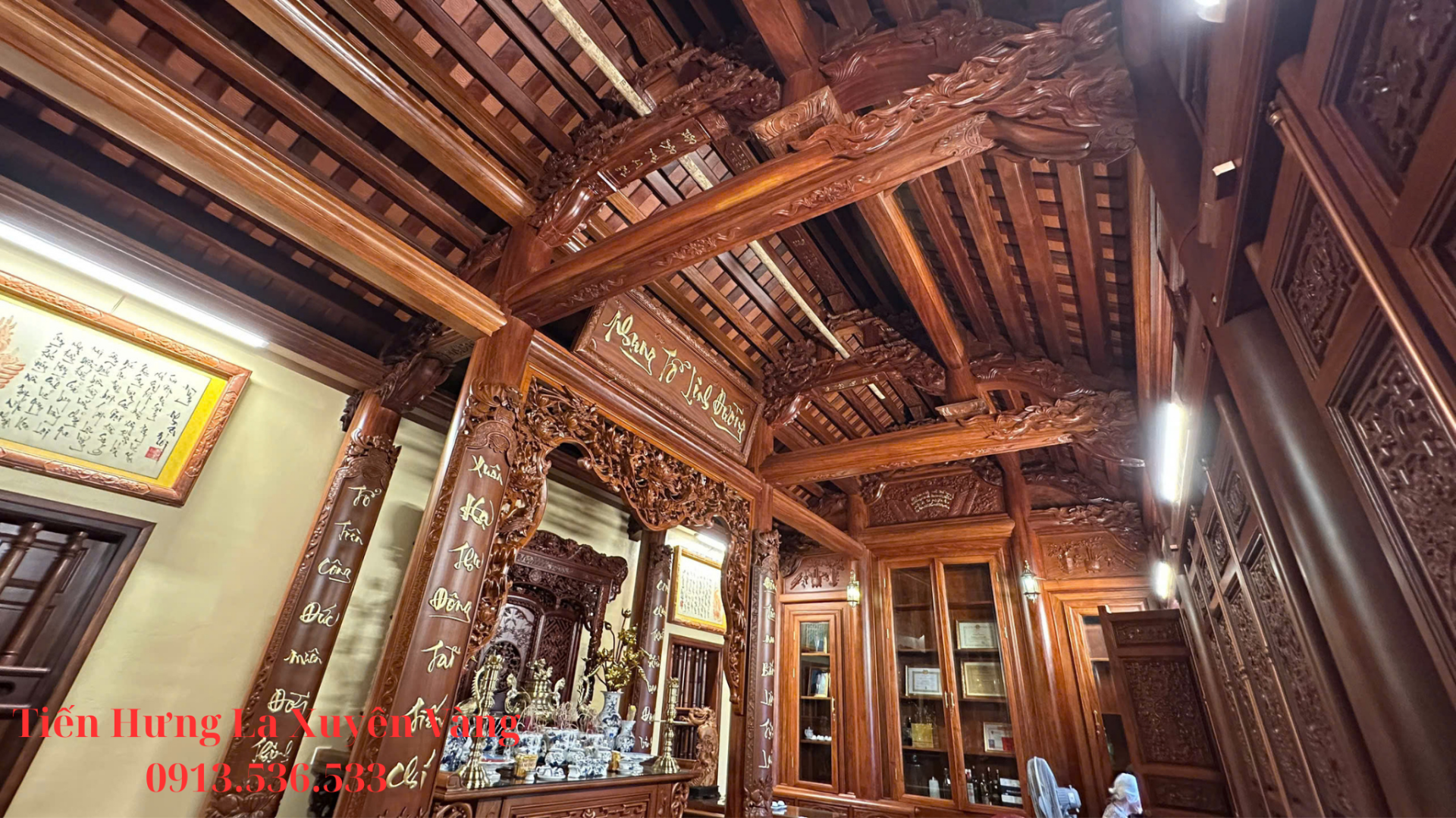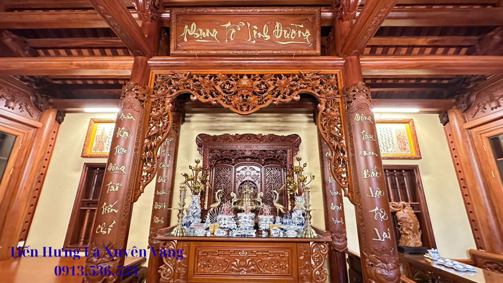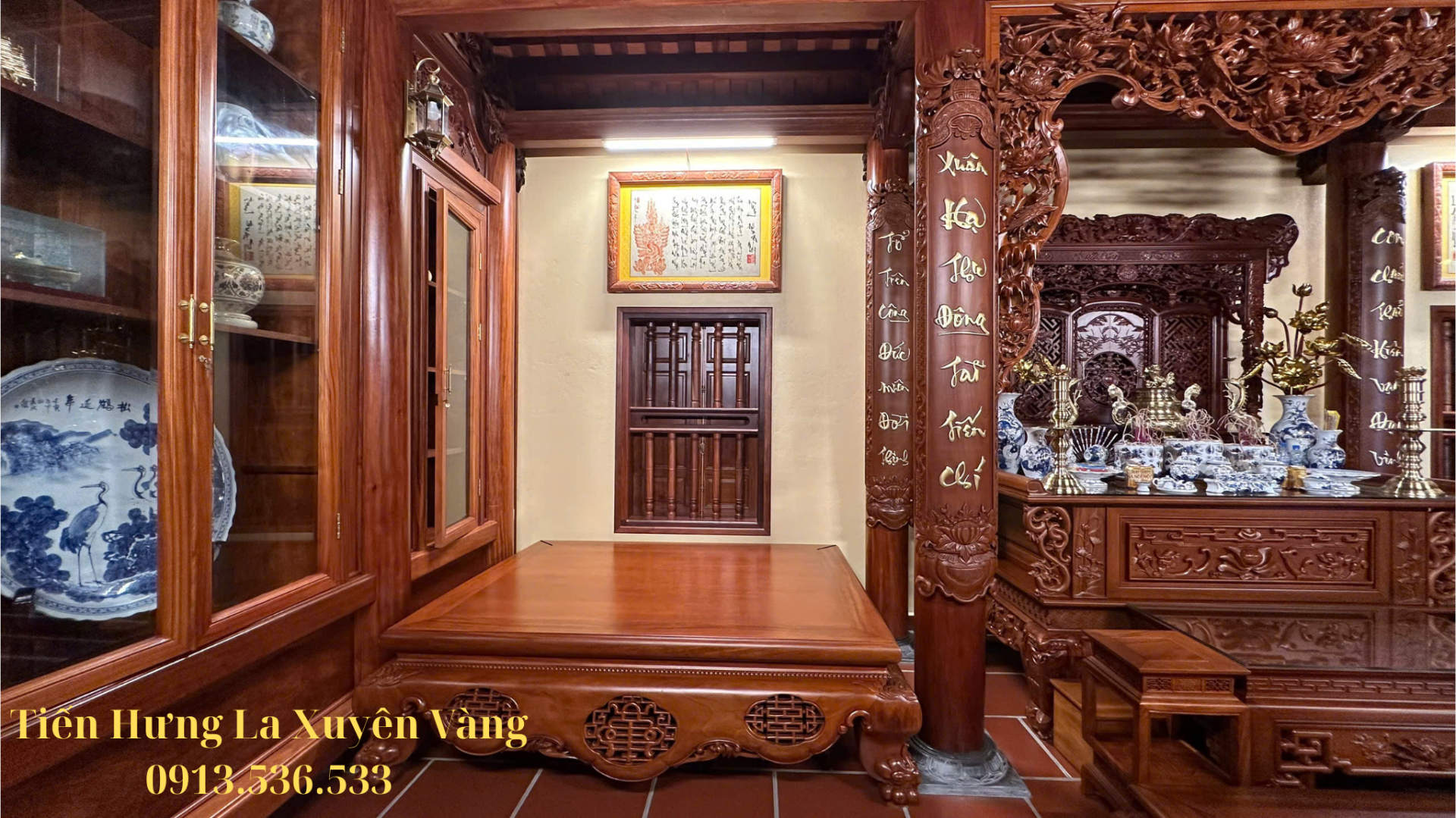 Chất liệu gỗ Lim Lào cao cấp: siêu bền, chống mối mọt, có tuổi thọ hàng trăm năm.